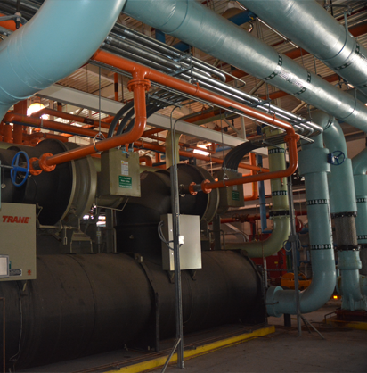 of 3,700 tons of chilled water cooling capacity, 1,150 BHP of heating capacity,